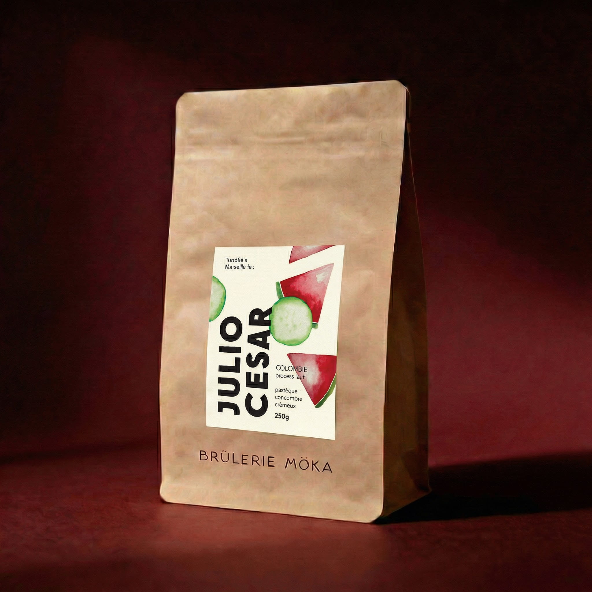 Ce café présente des notes de pastèque et de concombre. Ces notes ont notamment été révélées par le process de co-fermentation nitro. lequel les cerises de café ou les grains dépulpés sont fermentés en présence d’ingrédients externes (comme des fruits, des levures spécifiques, ou des épices) dans un environnement contrôlé, souvent sous atmosphère enrichie en azote (N₂). Ce process vise à modifier et enrichir le profil aromatique du café, en intégrant de manière subtile les composés volatils des ingrédients ajoutés.